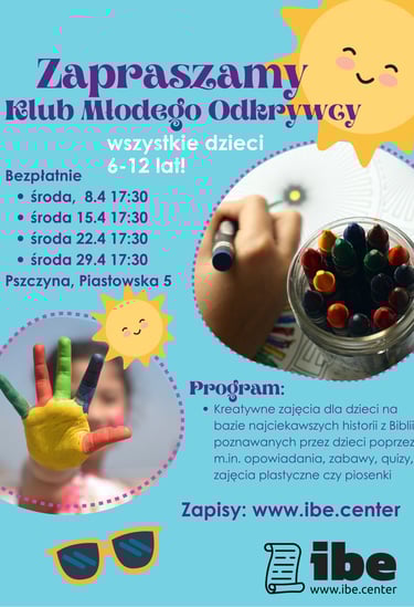 Centrum Rozwoju IBE.center jest świecką inicjatywą której operatorem jest firma Salesmen Polska z siedzibą w Pszczynie, które powstało z myślą o rozwijaniu zainteresowań uczestników z zakresu znajomości Biblii. Chcemy pokazać tę najpopularniejszą księgę świata od praktycznej strony użytecznej w codziennym życiu w formie różnych zajęć i warsztatów dopasowanych do zainteresowań uczestników. Zapraszamy do skorzystania z naszej całkowicie bezpłatnej oferty.